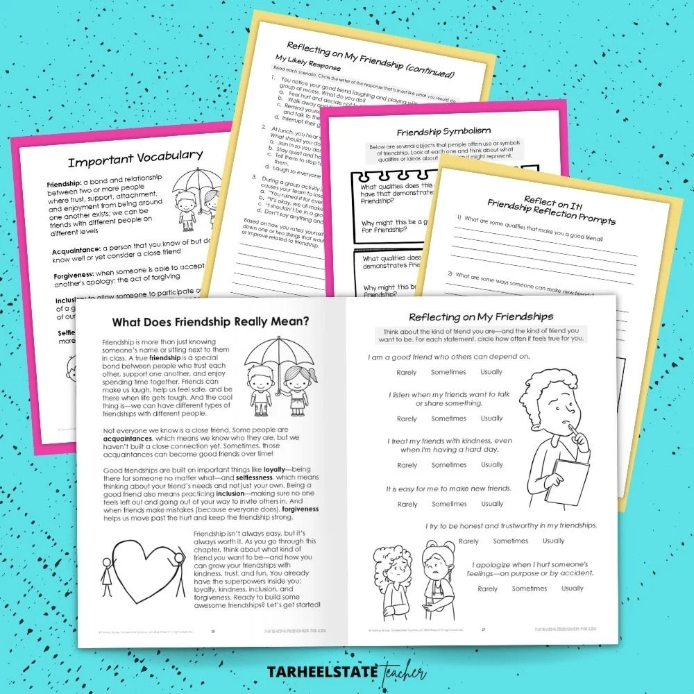They'll reflect on the kind of friend they want to be, learn the power of thoughtful gestures, and set goals for practicing positive friendship habits. This section helps kids understand that strong friendships grow when both people care, listen, and encourage each other.